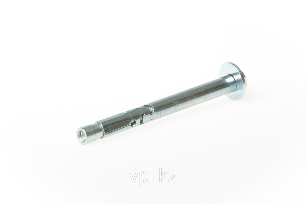 Анкер состоит из шпильки имеющей метрическую резьбу с одной стороны и конусообразный элемент с другой, двух цилиндрических распорных втулок, шестигранной гайки с напрессованной шайбой возможно применение гайки в комплекте с шайбой. При закручивании гайки происходит смещение шпильки с конусообразным элементом относительно втулок, вызывая их распор, приводящий к анкеровке в материале основания